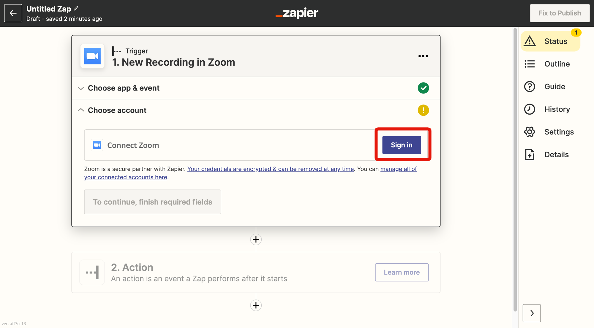 Zapierの”New Recording”トリガー(Zoom録画でプログラムを実行する)は、パスワードで保護されていないレコーディングでのみ機能します。Zap を作成する前に、Zoom の記録設定が正しいことを確認してください。