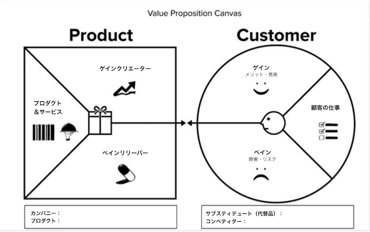 手法としては、バリュープロポジションキャンバスが、有名で便利です。