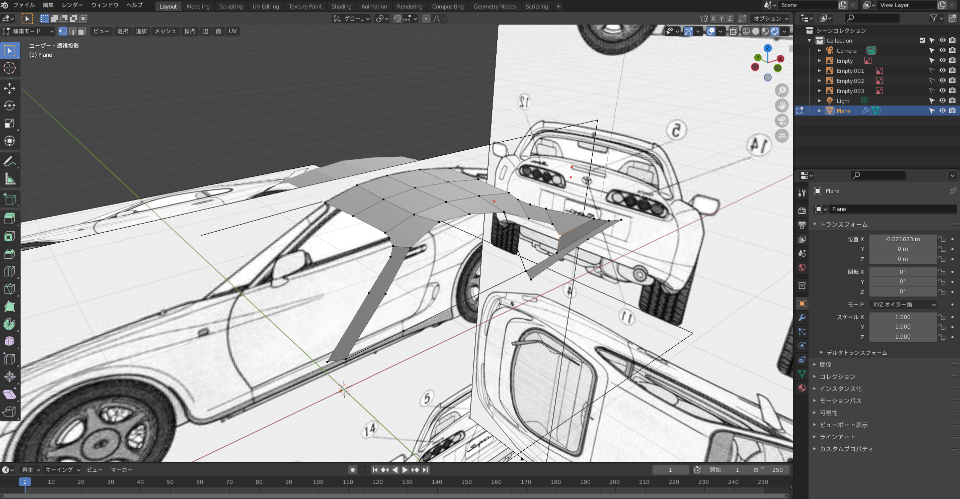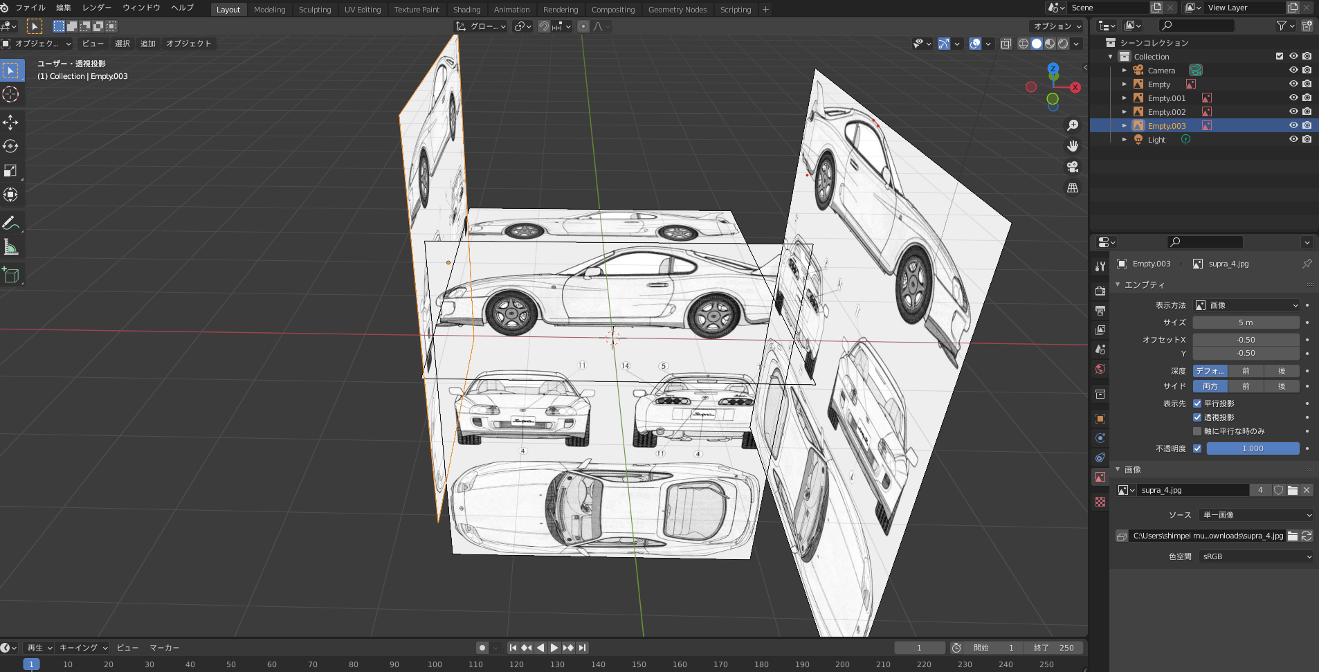 まず、設計図を配置する。設計図は”blueprint+車種名”で検索するとでてくる。
