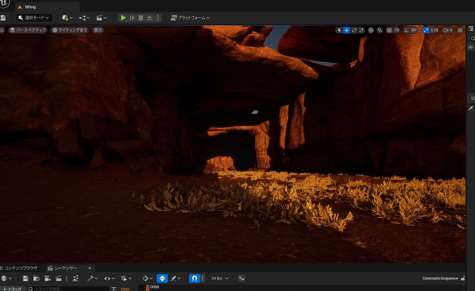 Unreal Engine初心者の私でも、Quixel BRIDGEで得た3Dアセットをつかって、こんな感じのワールドを作ることができました。